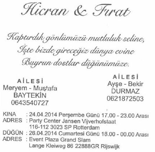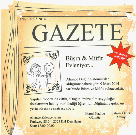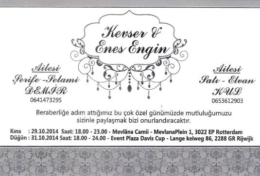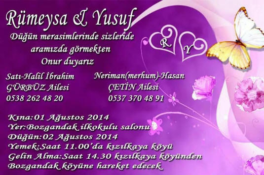 Büyük titizlikle tüm eş ve dostlarımı unutmamaya çalıştık eğerki unutmuş olduğumuz dostlarımız varsa. Düğünümüzde görmekten mutluluk duyarız.